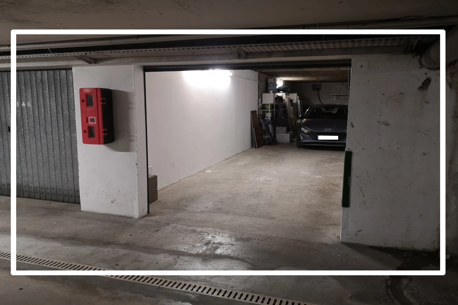 Grand garage en longueur, proche entree sous sol,